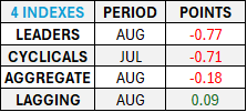 Indicador Cíclico – Segue os movimentos da economia em tempo real. Inclui bastante dados coincidentes, é focado em manufatura, construção civil e outras atividades cíclicas.