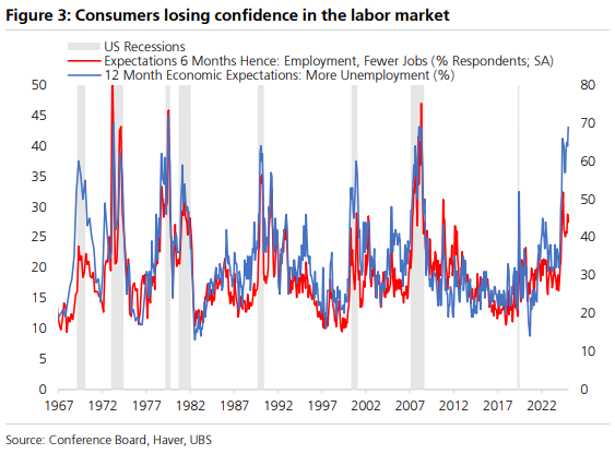 Os mercados também passaram a acelerar as expectativas de cortes de juros pelo Fed em novembro, um sinal de crescente preocupação com o ambiente macroeconômico subjacente. Diversos indicadores do mercado de trabalho enfraqueceram: as vagas abertas retornaram a níveis pré-pandemia, as demissões aumentaram no acumulado do ano, os pedidos contínuos de seguro-desemprego vêm subindo e as expectativas de desemprego medidas pelo consumidor atingiram máximas de várias décadas. Os dados de consumo também mostram uma divergência importante: os 40% mais ricos continuam sustentando a maior parte dos gastos, enquanto as camadas de menor renda enfrentam aumento de inadimplência em cartões e automóveis, queda na poupança e desaceleração no consumo discricionário. Essa combinação de enfraquecimento do mercado de trabalho e consumo desigual levou investidores a precificar a possibilidade de que o Fed precise cortar juros de forma mais agressiva em 2026.